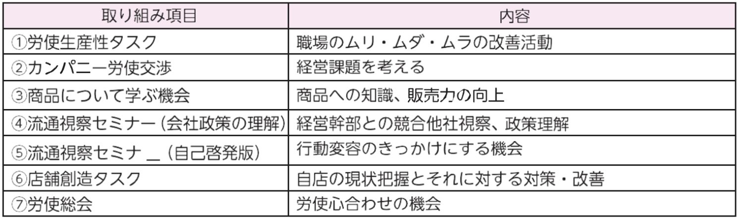 ※イオンリテールワーカーズユニオンの活動計画を基に業種、業態に応じた運動を展開します。
