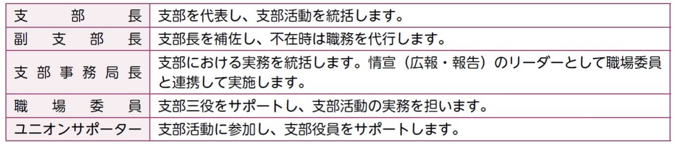 ● 労働協約に基づく労使協議ができる単位、もしくは定期的な組合活動が実施される単位を支部とします。