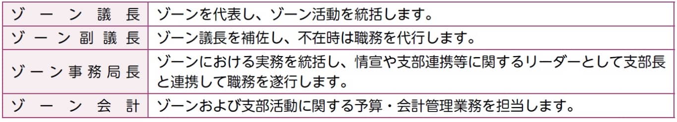 ● ゾーンは支部活動を統括するとともに、ゾーン内の相乗効果が高まる活動・運営を行います。