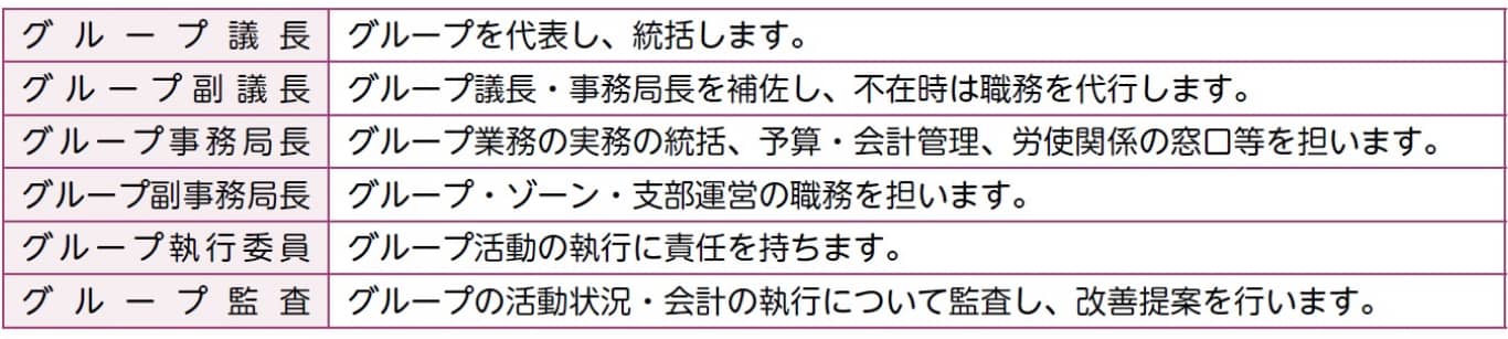 グループはグループ執行委員会・ゾーン運営委員会・支部執行委員会の開催と運営統括を行います。必要に応じて専門委員会等を開催します。