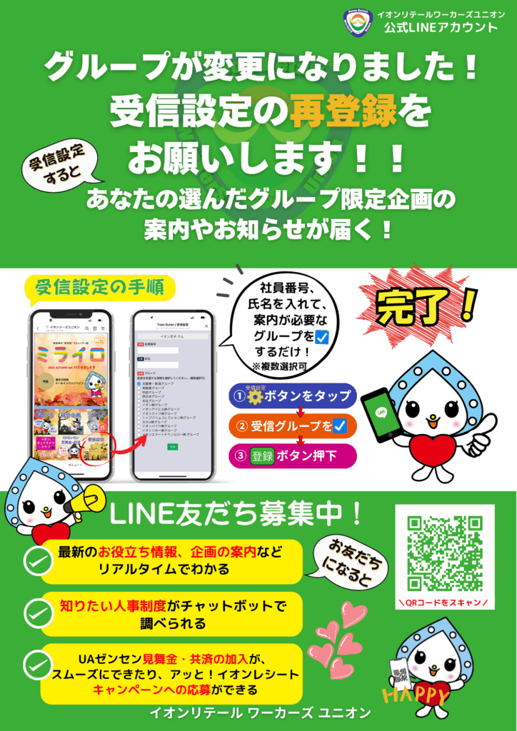 イオンリテールワーカーズユニオンのLINEお友だち登録をよろしくお願いいたします(^^♪